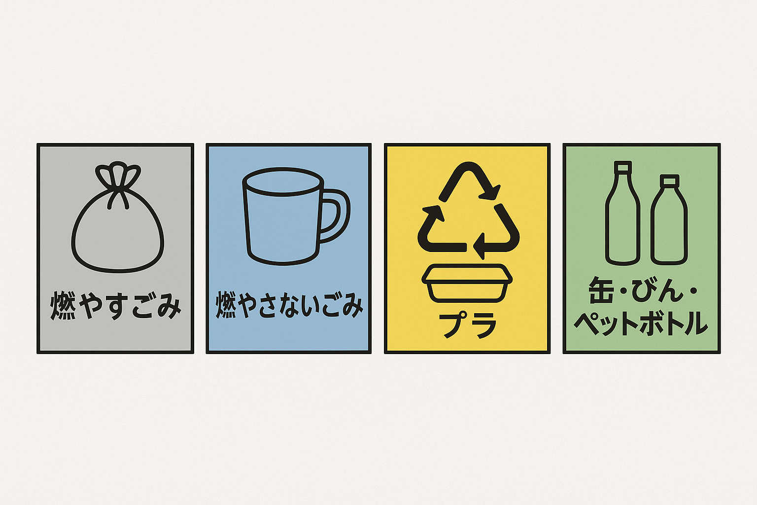대부분의 지자체는 ‘가연성’, ‘불연성’, ‘플라스틱’, ‘캔/병/페트병’, ‘대형 폐기물’ 등으로 분류하며, 배출 요일과 방식에 따라 지정된 봉투와 시간에 맞춰 배출해야 합니다. 또한, 일본의 분리배출 시스템은 지역에 따라 다소 차이가 있지만, 일반적으로 다음과 같은 분류로 구성되어 있습니다: